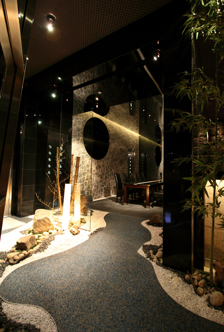 計画では地面を掘って石庭を作り、その上にガラスの床を設置しようという設計でしたが、なんと下に地下駐車場があり地面は掘れないことが発覚しました。