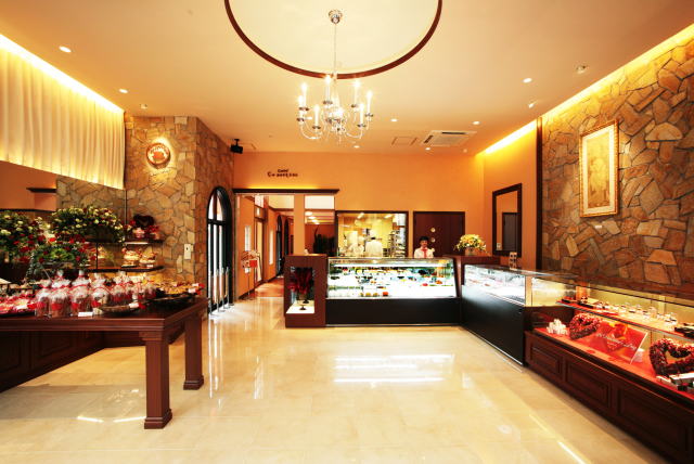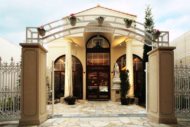 店舗は土壁とモールディングを多用したクラシックなヨーロッパ調デザインです。