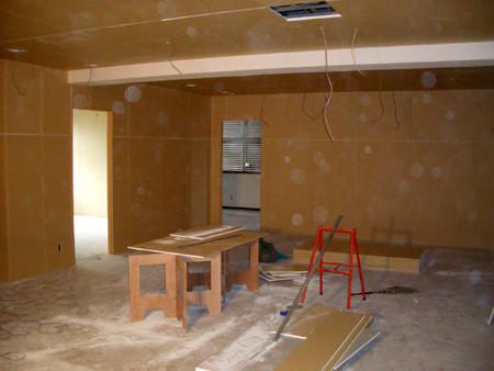 ↑配線仕込がおわると石膏ボードを貼って、その上からクロスを貼ります。