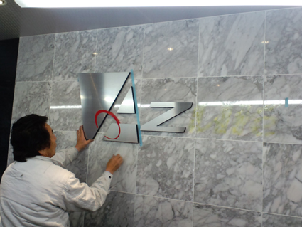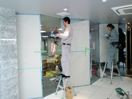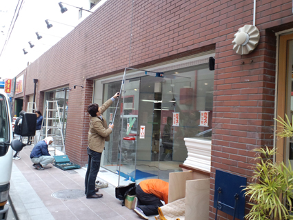 ↑スタジオとエントランスを仕切る屏風型のガラスも完成↑