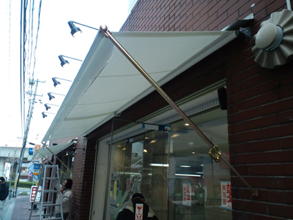 ↑高さが決まればテントの巻上げ部分を取り付けて↑