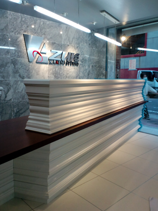 ↑そしてコイツが今回のインテリアデザインの主役、木製モールディングカウンター↑