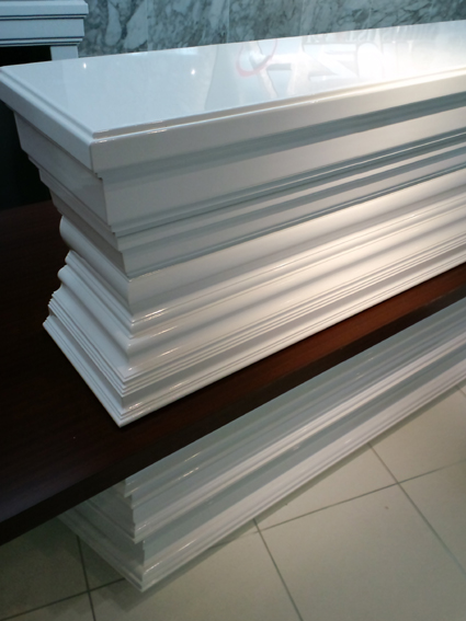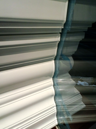 クラシックなデザインの窓枠や家具に使用するモールディングを積層しています。