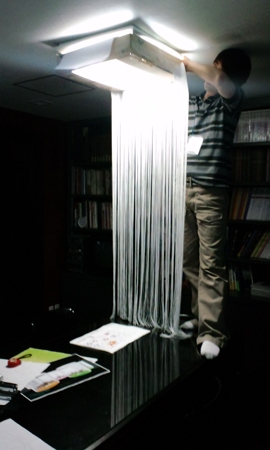 ↑文字の配置とピンの位置をかたどった紙を壁に貼ります↑