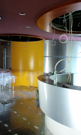 兵庫県尼崎市で進行中のコミュニティーホール内外装工事現場です。