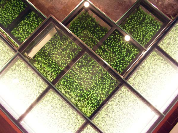 写真は階段真上から撮影。下に見えるのは内装用人工植栽です。