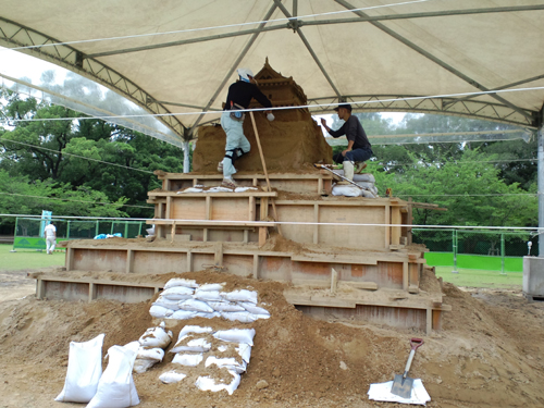 姫路JCの事業で東御屋敷跡公園で姫路城の砂像を作っています。