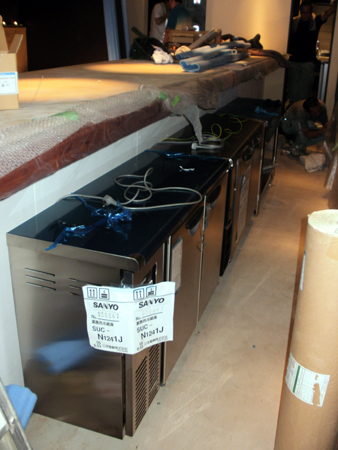 今日のバー工事現場は設備機器の据付・取付作業です。