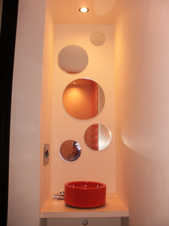 水玉模様のミラーでかわいい雰囲気を出してます。