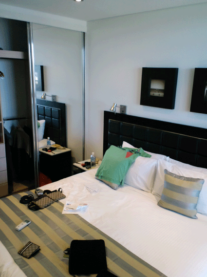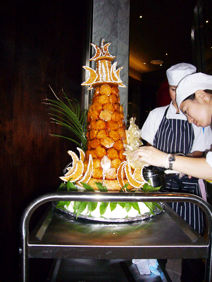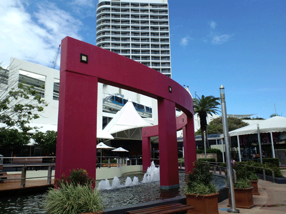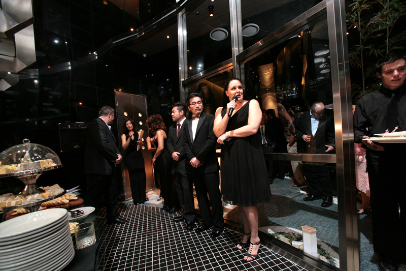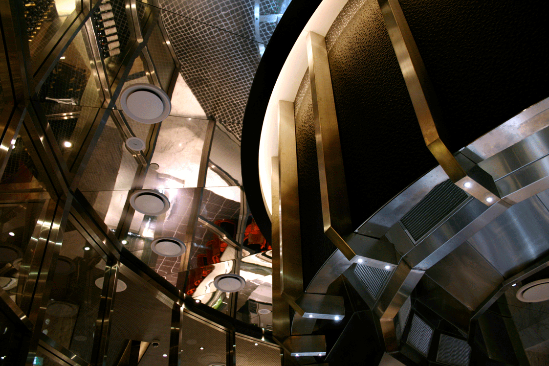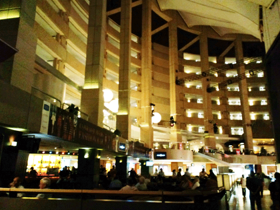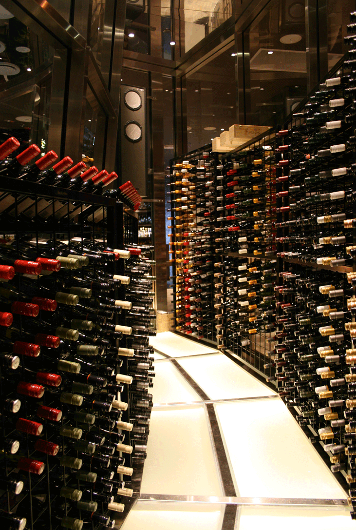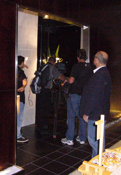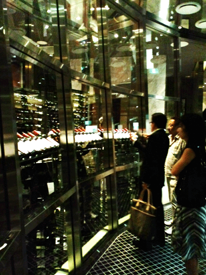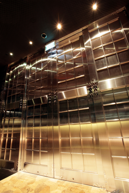 ↑入口のドアを開けると滝があり、池にかかる透明ガラスの橋を渡って店内へ