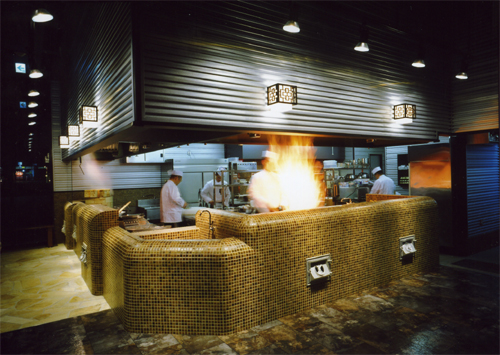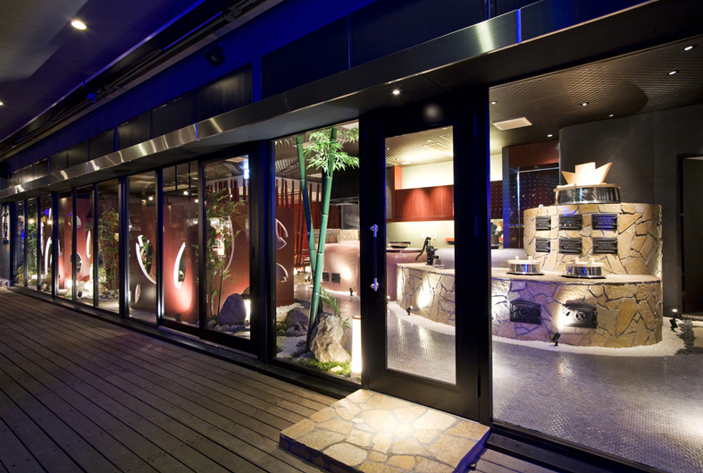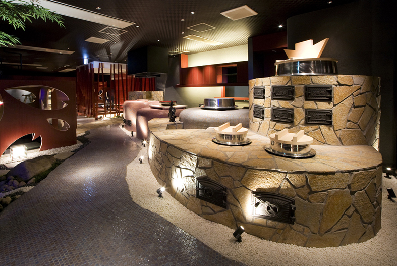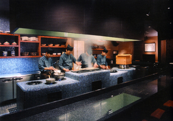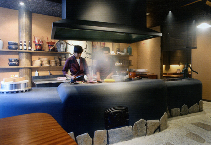 よく見る一般的なオープンキッチ ンはステンレス製の調理器を並べた厨房を見せるだけのものであり、それは裏方作業を利用客へ見せているだけに過ぎませんが、当社はオープンキッチンを空間の核と 位置づけ、店内のエンターテイメント性を高めることの出来る装置として演出することで、飲食店の本質的な部分に付加価値を与え、より訴求力のある店舗づくりを実現します。