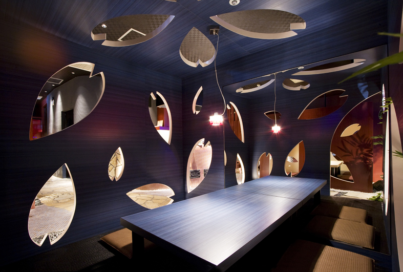 和食系の飲食店です。店舗のデザインは現代和風で店名のとおり桜の花びらをモチーフにしています。