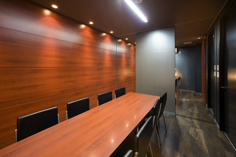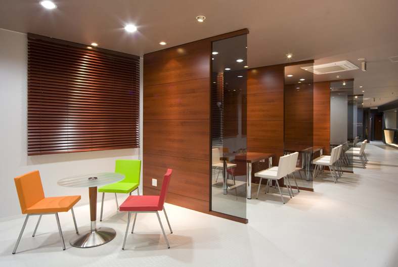 「SAKURA-CUBE」と名付けた箱型の個室は4人用と2人用があり、箱の内面の色はそれぞれ違う色の化粧板を使用しています。