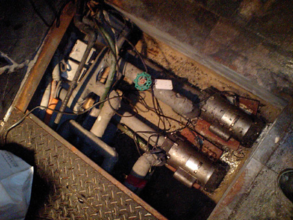 床下のピットにその滝の水を循環させているポンプ等の設備を設置しているんですが、