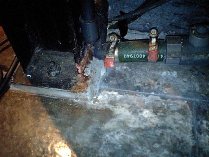 調べてみると、ろ過装置の配管ジョイントから微量の漏水があり、