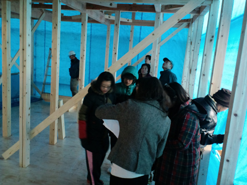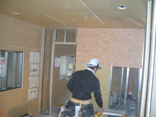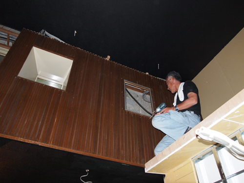 化粧板や緑青板など、内装に使用するほとんどの材料が現地で揃わないと。