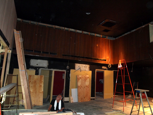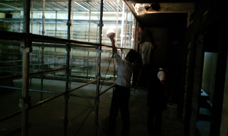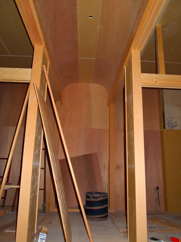 ↑宴会場の通路。まるい天井には金色のクロスを貼る予定。