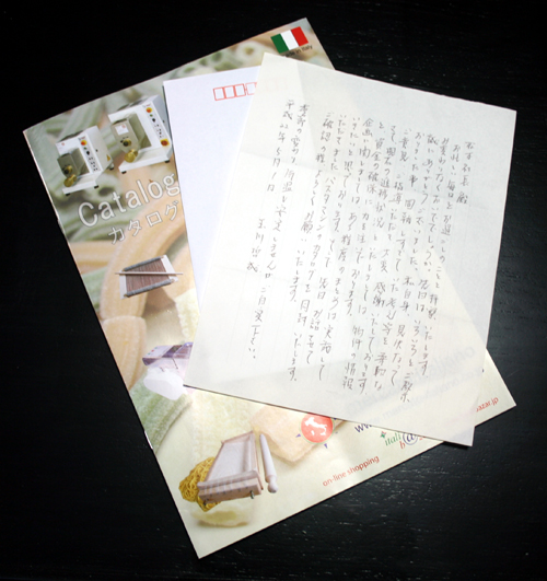 パスタマシンのカタログを同封いたします。